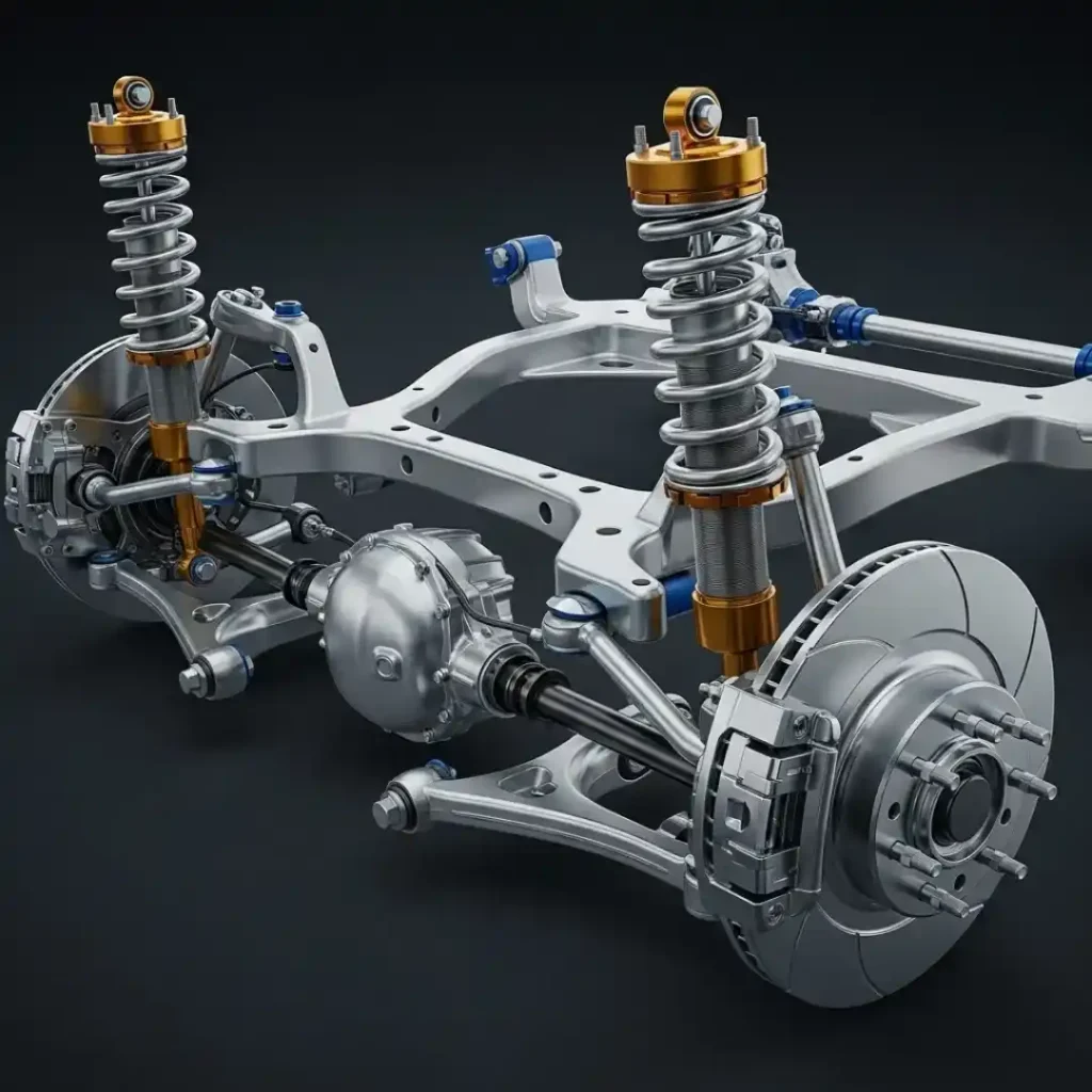 The suspension absorbs road shocks, maintains tyre contact, and stabilises the car during cornering. In performance models, these systems dynamically adjust damping rates and ride height to deliver a sporty yet comfortable ride.